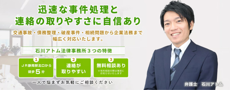 静岡をはじめ全国からの相談を受け付けており、初回相談・減額交渉が無料なのが特徴です。