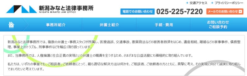 11人の弁護士が在籍しており、新潟で実力ある弁護士を揃え、的確かつ迅速な対応が利用者から高評価を得ています。