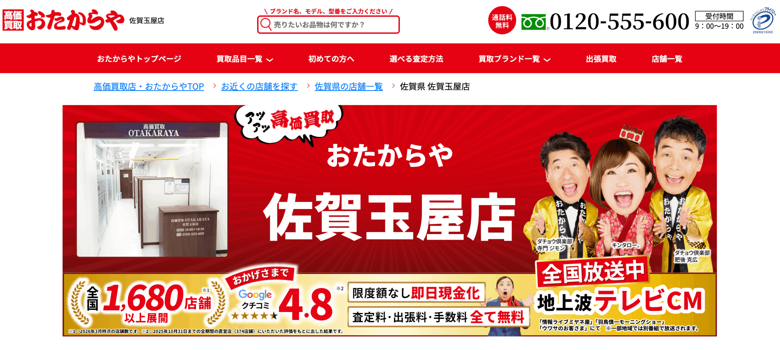 高価買取 おたからや 佐賀玉屋店は、老舗百貨店である佐賀玉屋の館内にあり、買い物ついでに立ち寄れる信頼度の高い買取店です。