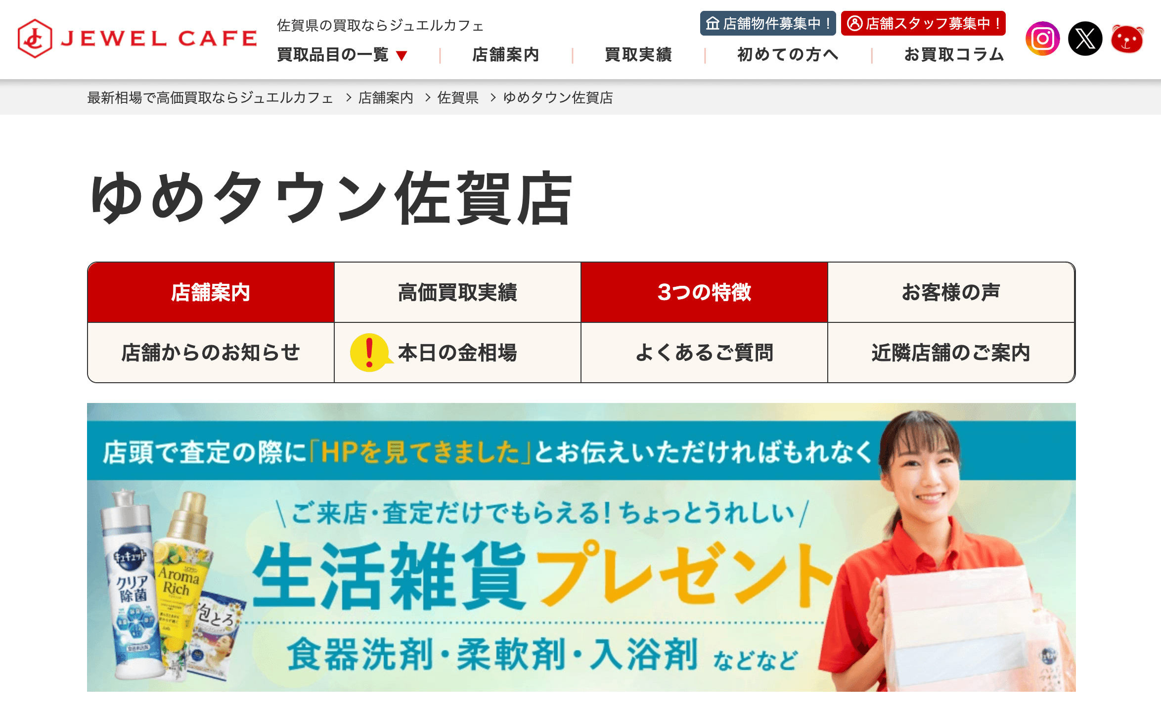 ジュエルカフェゆめタウン佐賀店は、ショッピングモール内に入っているため、お買い物ついでに立ち寄れる圧倒的な利便性が魅力の買取専門店です。